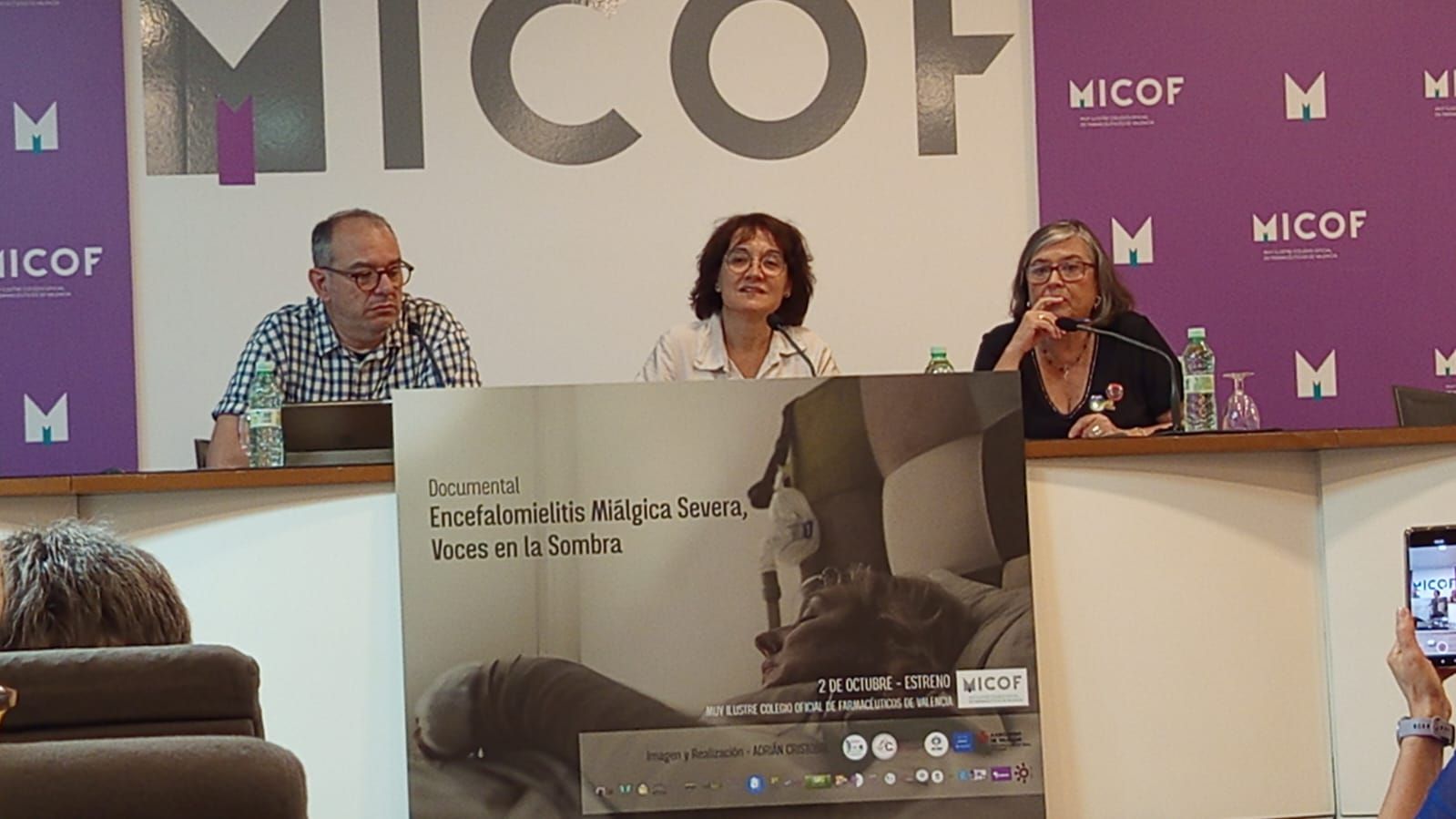 El evento contó con la participación de Vicente Colomer, Secretario del Muy Ilustre Colegio Oficial de Farmacéuticos de Valencia (MICOF), quien dio la bienvenida a los asistentes junto a Vicent Berenguer, miembro de la Junta Directiva de SFC-SQM Comunidad Valenciana, que en sus intervenciones iniciales, destacaron la importancia de iniciativas como esta para avanzar en el reconocimiento de la Encefalomielitis Miálgica Severa.