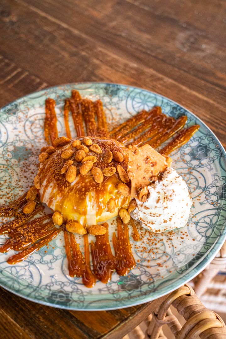 Entre las creaciones estrella de este verano destacan el salmorejo de cerezas, suave y ligeramente dulce, acompañado de encurtidos crujientes y un toque de eneldo que redondea el sabor; la lasaña vegetal de soja texturizada y láminas de berenjena, coronada por una cremosa bechamel Mornay que aporta profundidad al bocado; la tosta Niza de verduras asadas sobre pan de centeno, cubierta por crema de tomates secos y queso parmesano que aporta contraste entre dulzor y textura; y el icónico roll de canela, esponjoso y perfumado, glaseado con frosting sedoso, bañado en caramelo salado y coronado con cacahuetes glaseados en miel para un juego de texturas inigualable.
