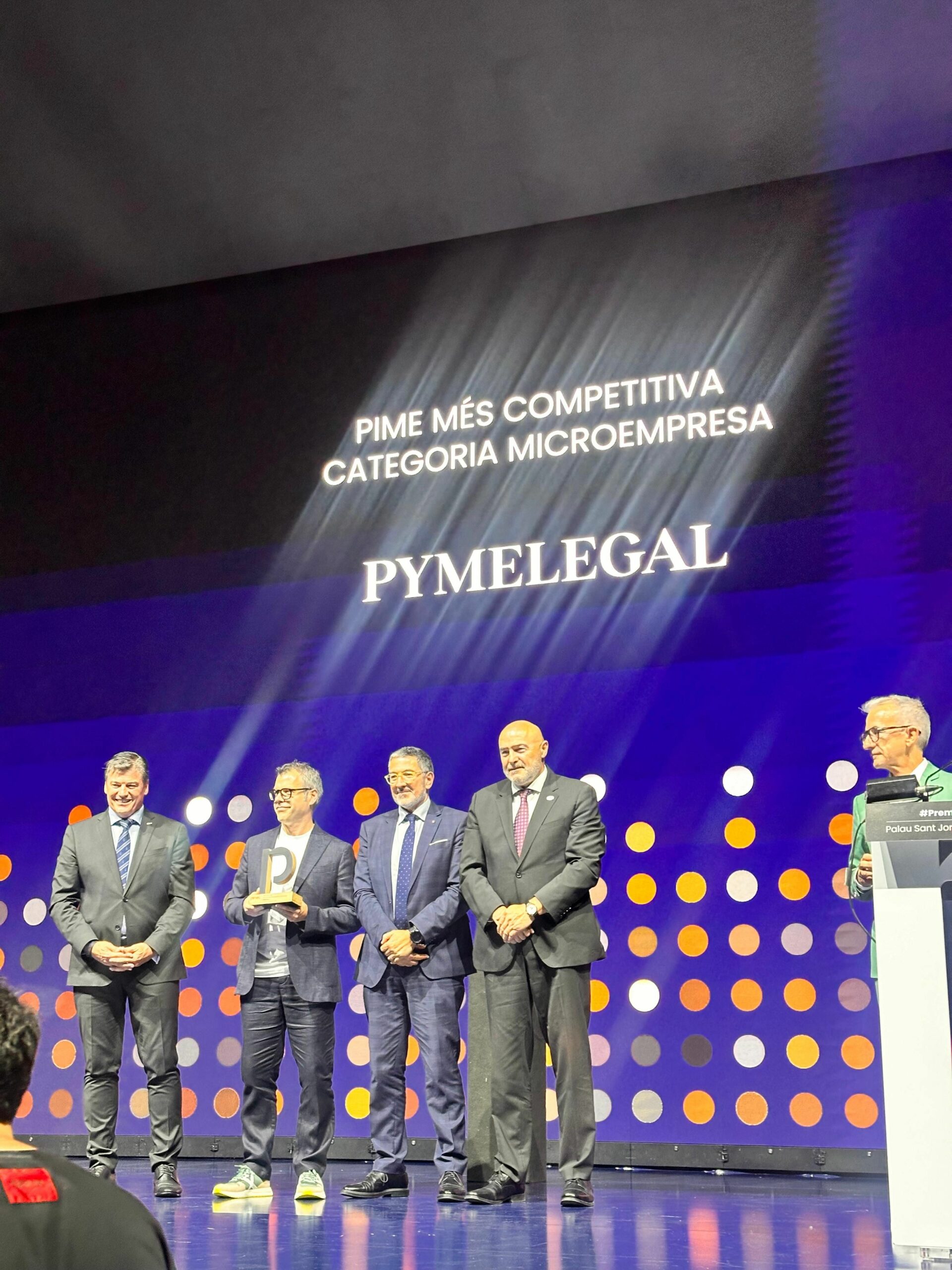 El premio fue recogido por el CEO de PymeLegal, Jaume Feliu, acompañado por todo el equipo de la empresa: el equipo legal de abogadas (Rosó, Anna, Marta, Paula y Jéssica), el personal de atención al cliente (Mari Carmen y Núria), la responsable de comunicación y marketing (Alba) y el experto en estrategia y finanzas (Alex).